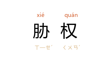 引《书·泰誓中》:“朋家作仇,胁权相灭。”孔颖达 疏:“姦宄之臣,胁於在下,假用在上之权命胁之,更相诛灭也。”唐 颜真卿 《广平文贞公宋公神道碑铭》:“时 张易之、昌宗 兄弟,席宠胁权,天下侧目。”