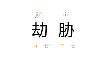 引《礼记·儒行》“刼之以众” 汉 郑玄 注:“刼,刼胁也。”《三国志·魏志·陈思王植传》:“植 醉酒悖慢,劫胁使者。”《资治通鉴·唐昭宗天复三年》:“未有能劫胁天子如制婴儿,废置在手,东西出其意,使天子畏之若乘虎狼而挟蛇虺,如 唐 世也。”