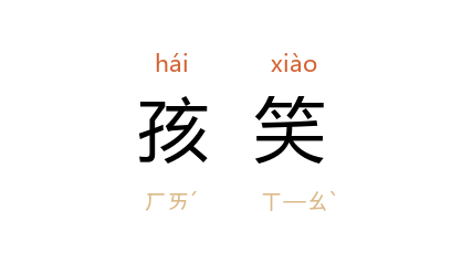 引《孟子·尽心上》“孩提之童” 汉 赵岐 注:“在襁褓知孩笑。”三国 魏 曹植 《金瓠哀辞》:“在襁褓而抚育,向孩笑而未言。”唐 杨炯 《从甥梁錡墓志铭》:“孩笑之时,见之者知其孝友;能言之际,听之者许其聪明。”
