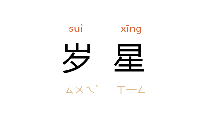 ⒈ 即木星。古人认识到木星约十二年运行一周天,其轨道与黄道相近,因将周天分为十二分,称十二次。木星每年行经一次,即以其所在星次来纪年,故称岁星。