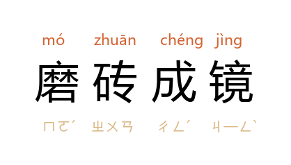 ⒈ 《景德传灯录·慧能大师》:“开元中,有沙门道一住传法院,常日坐禅,师知是法器,往问曰:'大德坐禅图什?'一曰:'图作佛。'师乃取一砖于彼庵前石上磨。一曰:'师作什?'师曰:'磨作镜。'一曰:'磨砖岂得成镜邪?'师曰:'坐禅岂得作佛邪?'”后用作比喻事情不能成功的典实。亦作“磨砖作镜”、“磨砖作镜”。