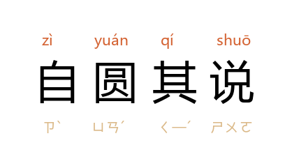 ⒈ 自行解释自己牵强矛盾的说法,使无破绽。