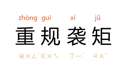 ⒈ 规、矩各相重叠。比喻情事相同。汉·王符也作「叠矩重规」、「规重矩叠」、「重规叠矩」、「重规累矩」。