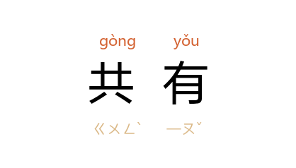 ⒉ 法律上指共有权,即两人(包括法人)或两人以上对同一财产共同享有的所有权。