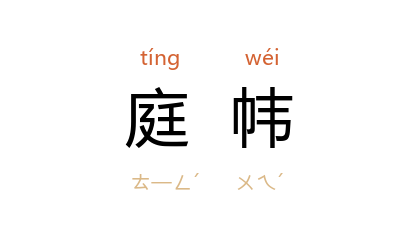 引唐 寒山 《诗》之十二:“鸚鵡宅西国,虞罗捕得归。美人朝夕弄,出入在庭幃。”清 蒲松龄 《聊斋志异·镜听》:“庭幃之中,固非愤激之地。”