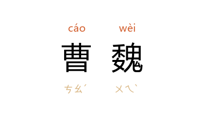 英语Cao Wei, the most powerful of the Three Kingdoms, established as a dynasty in 220 by Cao Pi 曹丕, son of Cao Cao, replaced by Jin dynasty in 265