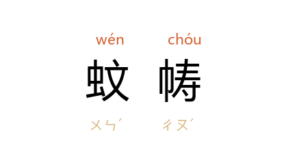 引《南史·崔祖思传》:“宋武 节俭过人, 张妃 房唯碧綃蚊幬, 三齐 苮席。”唐 元稹 有《张旧蚊幬》诗。 宋 陆游 《夏日杂题》诗之二:“新缝细葛作蚊裯,簟展风漪凛欲秋。”
