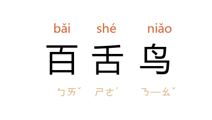 引《礼记·月令》“﹝仲夏之月﹞反舌无声” 汉 郑玄 注:“反舌,百舌鸟。”阿英 《花鸟争奇》:“百舌鸟挺身而应:‘我凤凰王居牡丹之先,何害?’”