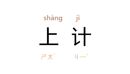 ⒉ 战国、秦、汉 时地方官于年终将境内户口、赋税、盗贼、狱讼等项编造计簿,遣吏逐级上报,奏呈朝廷,借资考绩,谓之上计。