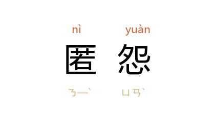 引《论语·公冶长》:“匿怨而友其人, 左丘明 耻之, 丘 亦耻之。”《南史·刘穆之传》:“本不匿怨,无所致忧。”明 李贽 《答来书》:“盖彼皆君子路上人,决无有匿怨友人,阳解阴毒之事。”清 袁枚 《随园诗话补遗》卷五:“不然,如 苏(苏正和 )模稜 刘仁轨,匿怨沽名,岂正人哉!”