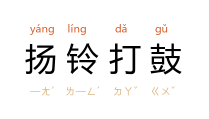 ⒈ 摇铃击鼓。比喻大肆张扬。也作「扬幡擂鼓」、「扬锣捣鼓」。