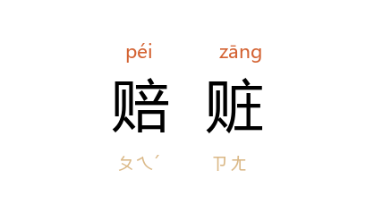引元 关汉卿 《裴度还带》第四折:“不想 傅彬 怀恨,指老夫三千贯赃,屈囚牢内,依命赔赃。”樊增祥 《批孙建兆呈词》:“尔妻做贼,众证确凿,尔尚不自反,反称污名难当,实属无耻而狡,著原差諭令按四成赔赃。”