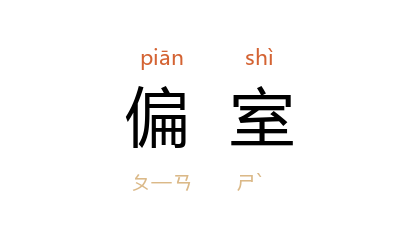 引宋 罗烨 《醉翁谈录·红绡密约张生负李氏娘》:“张资责 娶 李氏 为正室,其 越英 为偏室。”清 严有禧 《漱华随笔·李太青》:“有婢娟媚, 李 私狎之。许以他日贵,当置偏室。”