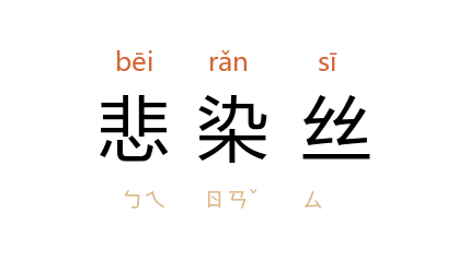 ⒈ 《墨子·所染》:“子墨子言见染丝者而叹,曰:'染于苍则苍,染于黄则黄……故染不可不慎也!'”后以“悲染丝”为易受习俗影响以及由此而发感叹的典故。