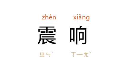 引晋 张华 《壮士篇》:“震响骇八荒,奋威曜四戎。”南朝 梁 沉约 《齐故安陆昭王碑文》:“震响成雷,盈涂咽水。”宋 苏轼 《栖贤三峡桥》诗:“跳波翻潜鱼,震响落飞狖。”