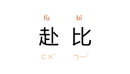 引明 范濂 《云间据目抄》卷四:“乃有家无担石,丁无餘口,遂列于排年者,既殫力於催征,又奔命於赴比。”《醒世姻缘传》第九十回:“既有 晁生 为尔等代输粮米,此后免行赴比。”
