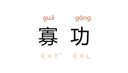 引《逸周书·命训》:“艺淫则害于才,政成则不长,事震则寡功。”孔晁 注:“震而其功寡矣。”《国语·齐语》:“正月之朝,五属大夫復事, 桓公 择是寡功者而讁之。”《荀子·非十二子》:“不法先王,不是礼义,而好治怪説,玩琦辞,甚察而不惠,辩而无用,多事而寡功,不可以为治纲纪。”