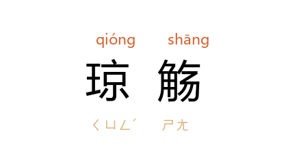 引唐 韦元旦 《奉和立春游苑迎春应制》:“年年斗柄东无限,愿挹琼觴寿北辰。”唐 李贺 《嘲少年》诗:“美人狭坐飞琼觴,贫人唤云天上郎。”前蜀 韦庄 《和郑拾遗秋日感事》:“晨趋鸣铁骑,夜舞挹琼觴。”清 陈梦雷 《今日良宴会》诗:“翩翩贵游子,列坐飞琼觴。”