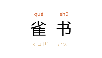 ⒈ 雀所衔的丹书。古代迷信,以为帝王受命之瑞应。