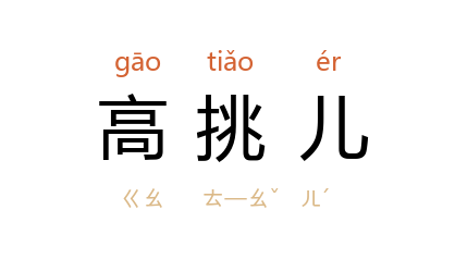 ⒈ 身材高体形瘦的人(他是个高挑儿)