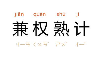 ⒈ 兼:涉及的不止一方面;权:衡量、比较;熟:深入细致;计:考虑。指多方面衡量,深入考虑。