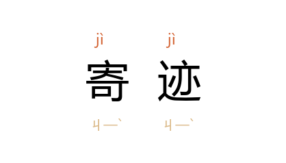⒈ 寄托形迹,指暂且托身。晋·陶渊明〈命子〉诗一〇首之六:「寄迹风云,冥兹愠喜。」唐·郑谷〈府中寓止寄赵大谏〉诗:「神州容寄迹,大尹是同年。」也作「寄身」。