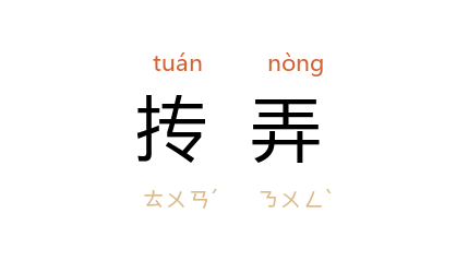 引元 汤式 《一枝花·赠素云》套曲:“一任他漫天巧结银河冻,半霎儿满地平铺素剪绒,则落得高卧先生恣摶弄。”清 洪昇 《长生殿·倖恩》:“咱这里羞羞澁澁,惊惊恐恐,直恁被他摶弄。”郭沫若 《文艺论集续集·我们的文学新运动》:“我们暴露于战乱的惨祸之下,我们受着资本主义这条毒龙的巨爪的抟弄。”