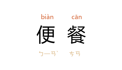 ⒈ 平常吃的饭菜,较筵席简便,故称为「便餐」。