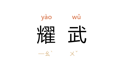 引唐 李德裕 《唐故左神策军刘公神道碑铭》:“公志气方强,春秋甚富,将欲扬威 瀚海,耀武龙廷。”《新唐书·王忠嗣传》:“天宝 元年,北讨 奚 怒皆,战 桑乾河,三遇三克,耀武漠北,高会而还。”