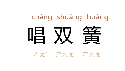 ⒈ 双簧,曲艺的一种。由一人在前面表演动作,另一个人藏在后面或说或唱,紧密配合。现在常把两人一唱一和比喻为唱双簧,有讽刺意。
