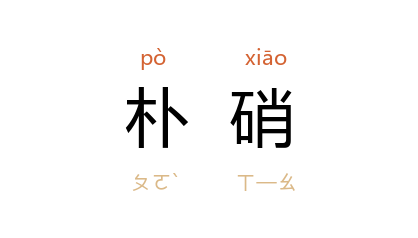 ⒈ 一种中药。主要成分有硝酸钾、食盐及其他杂质的硫酸钠,是海水或盐水蒸熬后的结晶物。无色、透明,呈棱柱状,可作泻药、利尿药。亦可用来使皮革变柔。