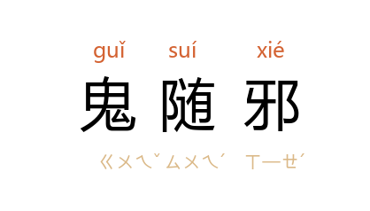 引明 汤显祖 《牡丹亭·冥誓》:“一点心怜妾,不著俺黄泉恨你,你只駡的俺一句鬼随邪。”徐朔方 等校注:“鬼随邪,鬼促狭。”