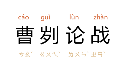 ⒈ 散文篇名。载《左传·庄公十年》,篇题后人所加。齐、鲁长勺之战前,鲁人曹刿求见鲁庄公论战,认为庄公取信于民,得到“国人”支持,可以一战,并自请协助指挥。两军相遇后,待齐军一鼓作气,再而衰,三而竭时,使庄公出击,终于大败齐军。