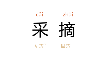 1. 摘取。 明 李时珍 《本草纲目·果三·龙眼》:“其木性畏寒,白露后方可采摘,晒焙令乾,成朵,乾者名龙眼锦。”