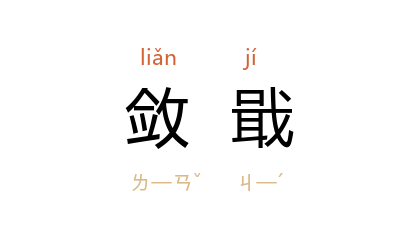 引明 张居正 《答南兵兼河道凌洋山书》:“好议喜事者,知鄙意有在,亦自敛戢,而不敢復兴事端。”《明史·魏大中传》:“忠贤 势益张,以廷臣交攻,阳示敛戢,且曲从诸所奏请,而阴伺其隙。”郭沫若 《今昔集·世界大战归趋》:“民主阵线对于 高加索 的防卫,可以说是没有丝毫懈怠的,然而纳粹魔鬼乃至轴心国全体的野心,决不会因此而敛戢。”