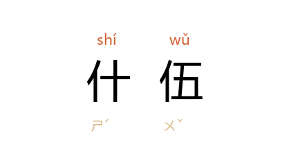 ⒈  古代军队编制,五人为伍,十人为什,称什伍。亦泛指军队的基层建制。