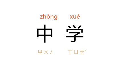 ⒉ 实施中等教育的学校,程度在小学、大学之间,旧分初高两级,期限各三年,今初级中学已划入国民教育范畴。