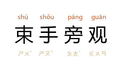引《歧路灯》第六二回:“咱们不得束手旁观,睁着眼叫他陷於不义。”巴金 《秋》三九:“梅 因吐血而死。现在年轻的 枚少爷 又在吐血……又是一个悲剧,他们仍然只有束手旁观。”