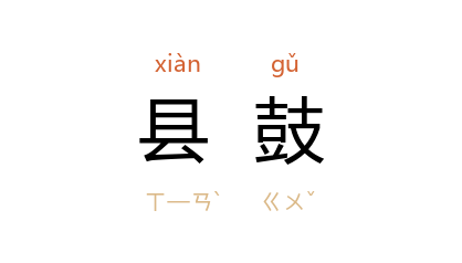 引《礼记·礼器》:“庙堂之下,县鼓在西,应鼓在东。”孔颖达 疏:“县鼓,谓大鼓也。”汉 董仲舒 《春秋繁露·三代改制质文》:“乐县鼓,用《万儛》,儛溢衡。”
