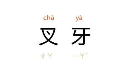 引唐 韩愈 《落齿》诗:“叉牙妨食物,颠倒怯漱水。”