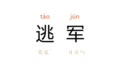 引《穀梁传·文公七年》:“﹝ 先蔑 ﹞輟战而奔 秦,以是为逃军也。”范宁 注:“为将而独奔,故曰逃军。”