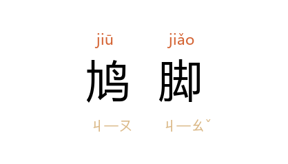 ⒈ 见“鳩脚”。指树枝上的密丫叉。一本作“鳩脚”。