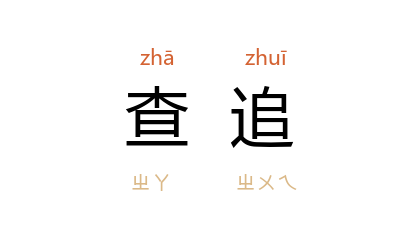 引昆曲《十五贯》第五场:“况钟 :‘此案可疑,还须要仔细查追。’”胡适 《红楼梦考证》二:“关于 曹 家衰落的情形,我们虽没有什么材料,但我们知道 曹寅 的亲家 李煦 在 康熙 六十一年因亏空被革职查追了。”