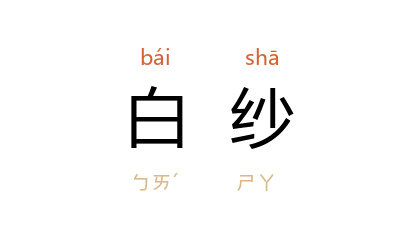 ⒈ 白色细薄的纺织品。常借指新娘礼服。