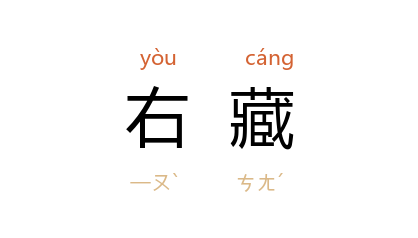 引《新唐书·百官志三》:“右藏署……掌金玉、珠寳、铜铁、骨角、齿毛、綵画。”宋 徐铉 《稽神录·陈德遇》:“江南 伪右藏库官 陈居让,字 德遇,直宿库中。”《元史·世祖纪九》:“禁中出纳分三库……金银、只孙衣段隶右藏。”