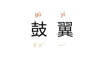 引汉 张衡 《归田赋》:“王雎鼓翼,仓庚哀鸣。”《宋书·符瑞志上》:“凤凰鼓翼而舞。”殷夫 《我醒时……》诗:“战栗的喜悦袭击着我,我不禁我诗灵鼓翼奔腾。”