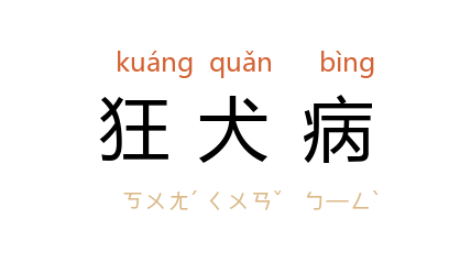⒈ 病名。由病毒引起的急性传染病。常见于猫、狗、牛、羊等家畜,人或其他牲畜被患病的牲畜咬时,亦可能感染。狂犬病毒进入动物体内,可潜伏四至六周。症状为食欲不振、发烧、头痛、狂叫、见水即产生咽喉痉挛,最后全身麻痺而死。治疗的方法是在三天内注射抗毒血清。
