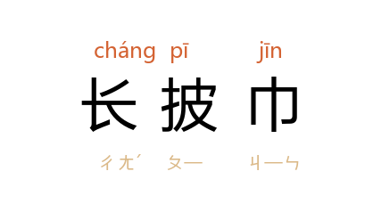 ⒈ 一种既长又宽的巾饰织物。多作妇女御寒和装饰用。能与多种服装搭配。作为正式装束用的长披巾,常采用毛皮制成,效果华丽。一般装束则采用毛织物、人造毛皮、丝料、纱网等质地的长披巾。有的丝质长披巾还绣有精美图案,是上等的工艺品。