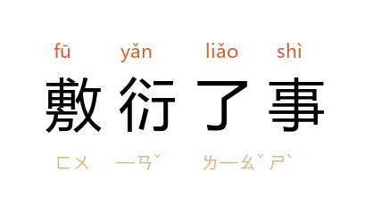 引《文明小史·第四三回》:「到了那里,人家因为他是抚台,头一个就请他,他就取出那张纸来看著,念了一遍,总算敷衍了事。」
