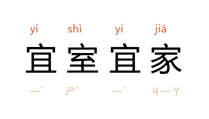 引《诗经·周南·桃夭》:「之子于归,宜其室家。」《三元记·第六出》:「奴家金氏,良人冯商,宜室宜家,尚未弄璋弄瓦。」《牡丹亭·第七出》:「思汉广,洗净铅华,有风有化,宜室宜家。」
